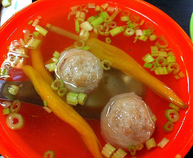 金針吃來鮮甜,貢丸則是兒子一人包辦
