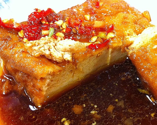 這豆腐魯的入味不死鹹,外皮酥內裡軟嫩入味,淋上滷肉汁