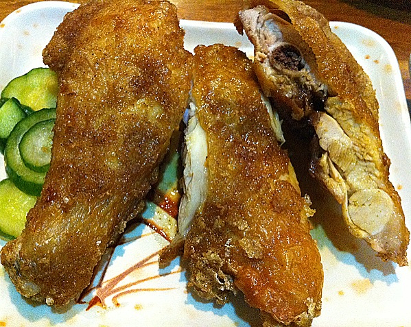 炸雞腿,薄薄的皮~吃來香脆不油膩,雞腿還滴出湯汁